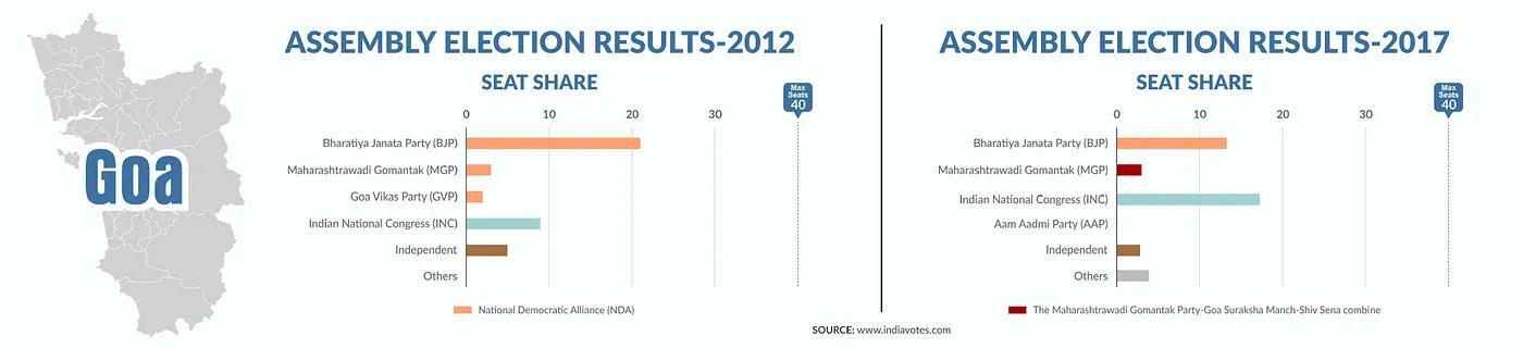 In the last elections in Goa in 2017, the AAP made an ambitious debut campaign and pitched 39 candidates. However, the party failed to secure a single seat and was able to secure 6.3% of the vote share. Even AAP’s chief ministerial candidate, Elvis Gomes, a former bureaucrat, trailed at fourth place in his constituency in Cuncolim. However, things are looking up for the AAP in Goa in 2022 as experts predict the party will make big gains in the state and replace the INC as the principal opposition party. The BJP, which formed the government in 2017 with the Maharashtrawadi Gomantak Party (MAG), Goa Forward Party (GFP), and Nationalist Congress Party (NCP) is expected to retain power in the state. The ABP-CVoter survey has predicted 22–26 out of the 40 seats for the BJP, followed by 4–8 seats for the AAP.
